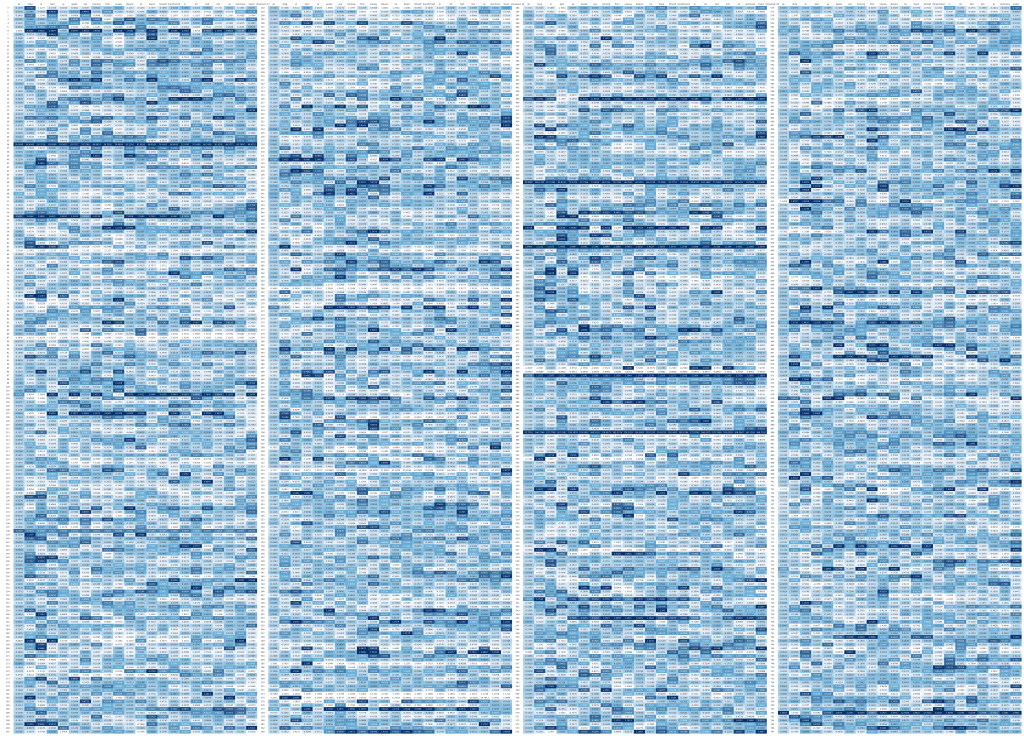 each token’s 768-dimensional vector is mapped to color values and arranged into a grid.